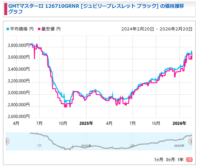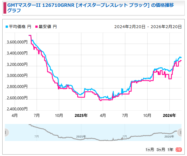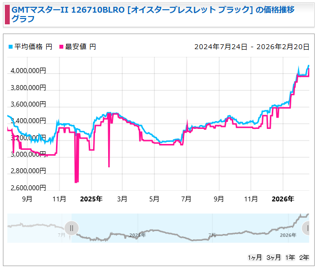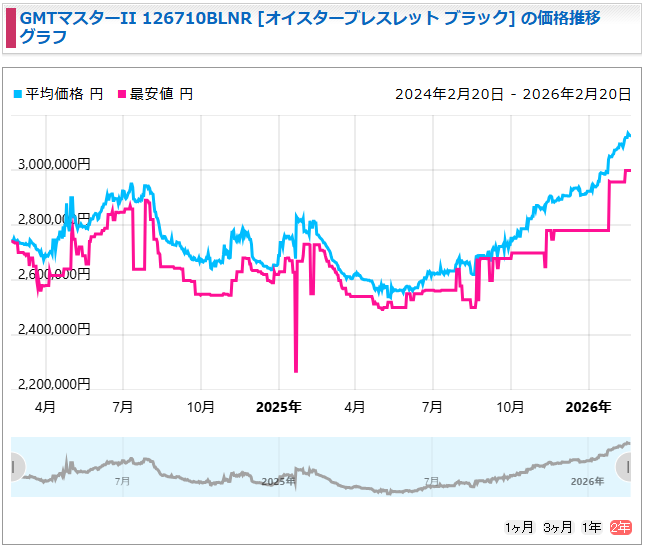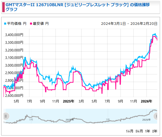 「2026年2月 ロレックス 人気モデルの相場をチェック!GMTマスターII(126710BLNR / 126710BLRO / 126710GRNR)」でした。