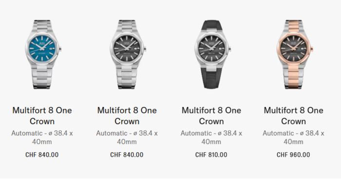 同じスウォッチグループの Tissot PRXは価格的には半額クラス。一方で Maurice Lacroix アイコン オートマチック39は約2倍。そのちょうど中間にいるのがこのマルチフォート8 ワンクラウン。しかも80時間パワーリザーブ、ニヴァクロンヒゲゼンマイ、100m防水、厚さ9.9mm。スペックだけ見れば、かなり魅力的ですよね。