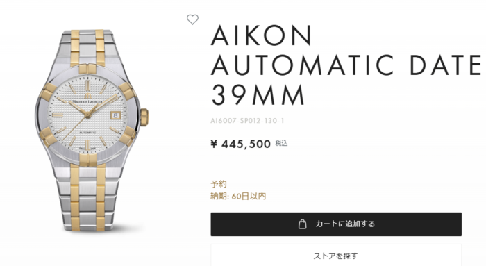 スペックは同じですがPVD処理分 価格は高くなっていて960 スイス・フラン(約192,000円)です。