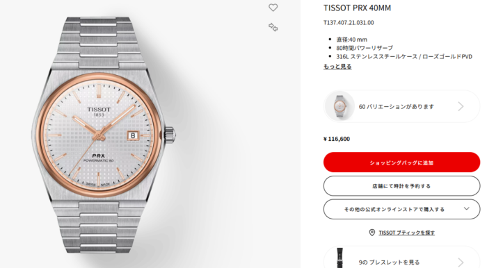そして同じグループ傘下のティソPRXは半額です。