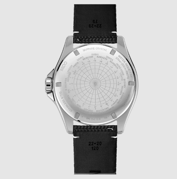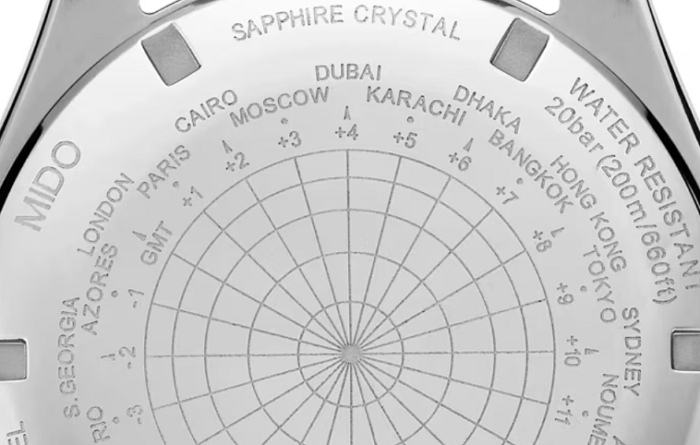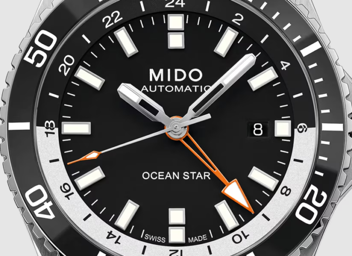 ミドーは、オーシャンスター ダイバーズウォッチ コレクションに、非常に便利なGMT機能を搭載したモデルを新たに追加しました。このモデルは、ホームタイムとローカルタイムの2つのタイムゾーンを明確に表示します。最大80時間のパワーリザーブを誇る自動巻きムーブメント、キャリバー80を搭載したこのスポーティなスイス製ウォッチの裏蓋には、タイムゾーン表示が刻印されています。非常に使いやすいGMT機能は、海辺でもアドレナリン全開の冒険でも、2倍の自由をもたらします。