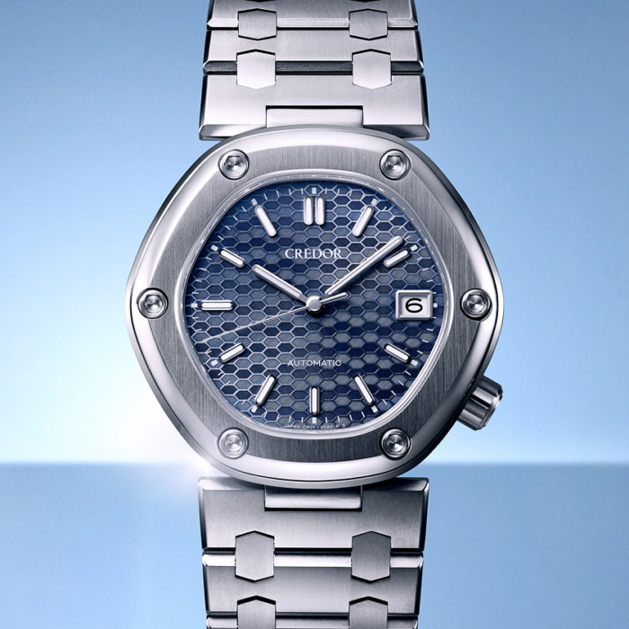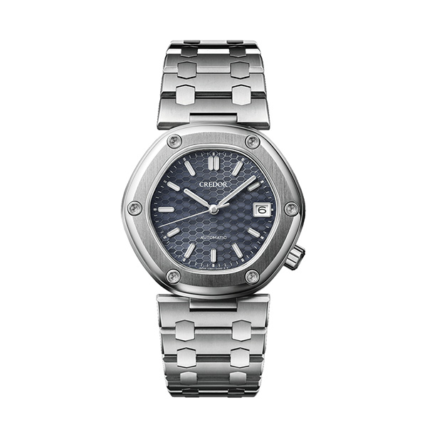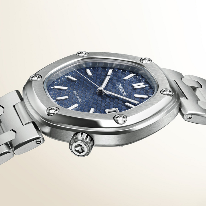 この時計には、クレドール専用の自動巻きムーブメント「キャリバーCR01」が搭載されています。薄型の3針メカニカルムーブメントに仕上げたことで、クオーツムーブメントを搭載したオリジナルモデルと同様に、厚さ9mm以下のエレガントなフォルムを実現しました。