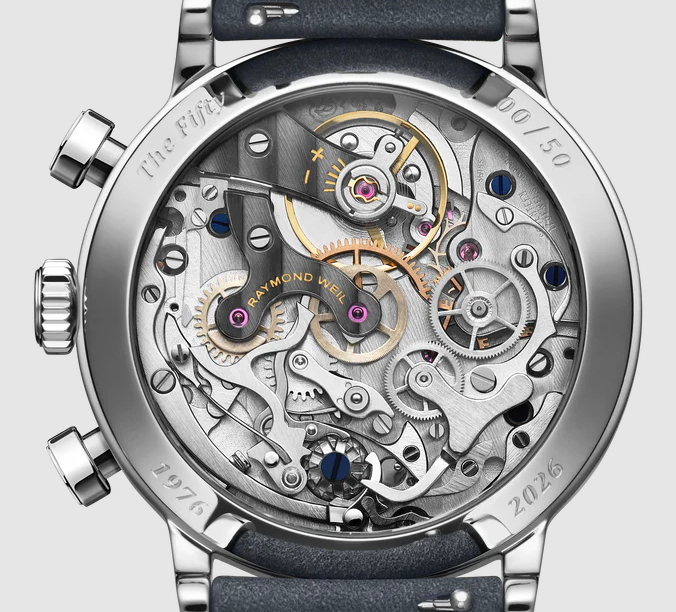 創業50周年を記念し、RAYMOND WEILは自らの物語の中心に機械式時計製造を据えます。「The Fifty」は真の工房作品として構想され、最も純粋なかたちで時計作りを体現しています。すなわち、手作業によるクラフトマンシップ、精緻な表現、そして伝統的なサヴォアフェールへの敬意。すべての部品、表面、ディテールは手作業で仕上げられ、スイスの芸術性の奥深さと気品を映し出しています。